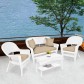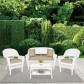 Add a bright and pleasant touch to your patio with this 4-piece conversation set. Each piece features a steel frame construction, covered in an all-weather resin wicker. The complementary cushions add extra color and comfort to this stylish set. The set includes one loveseat, two chairs, and one coffee table. In addition, this set is virtually maintenance-free and cleaning it is as simple as spraying it down with your garden hose or wiping it with a solution of mild dish soap and water.Whether you're sipping lemonade on a sunny afternoon or engaging in lively conversations under the stars, our 4-piece conversation set is the perfect choice.