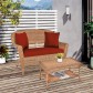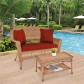 Honey Wicker Patio Love Seat And Coffee Table Set With Brick Red Cushion