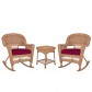 3pc Honey Rocker Wicker Chair Set With Red Cushion